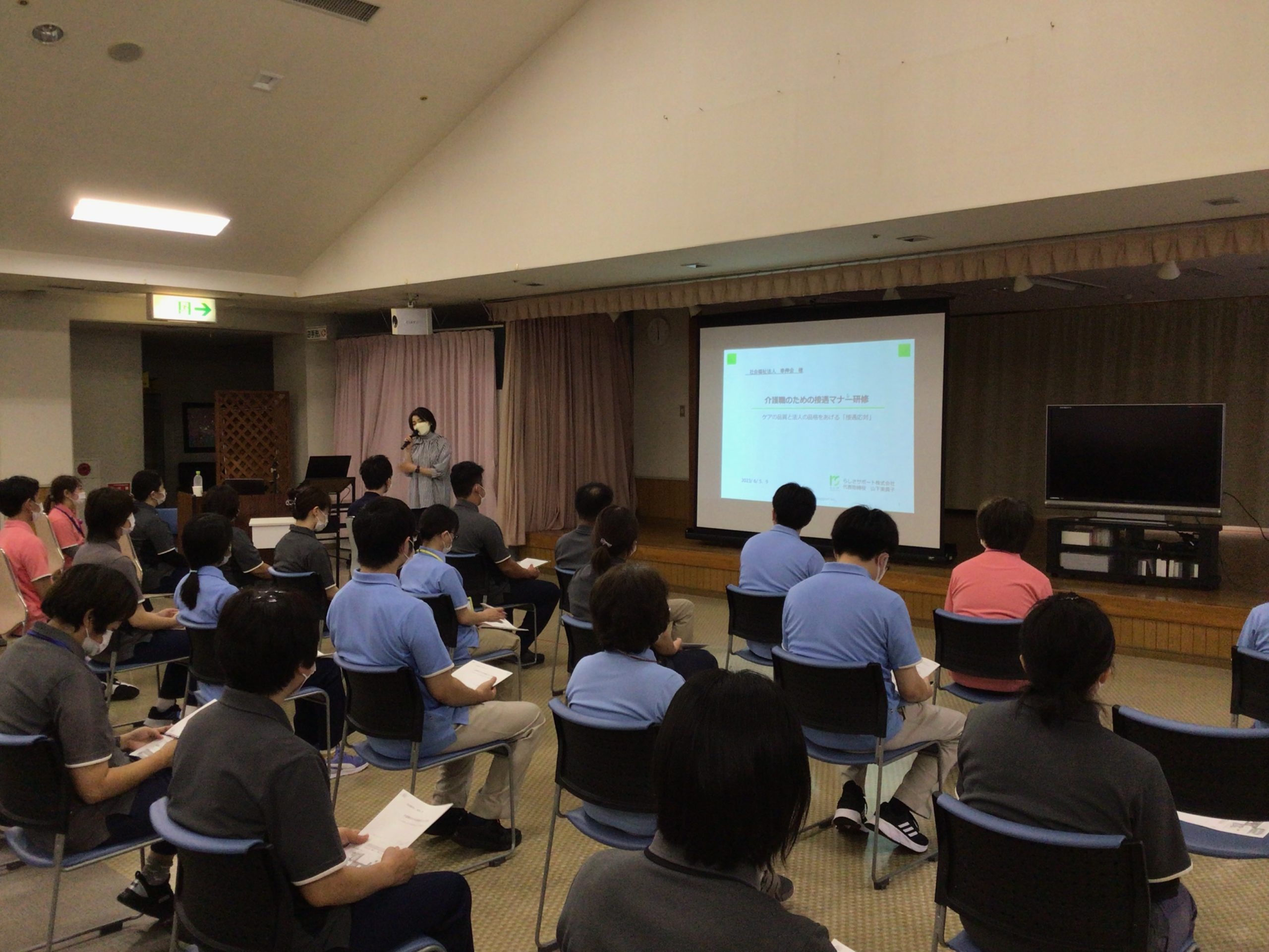 6月5日(月)に鹿児島市のらしさサポート株式会社 代表取締役 山下美貴子氏を招き、「介護職のための接遇マナー研修」を実施しました。
