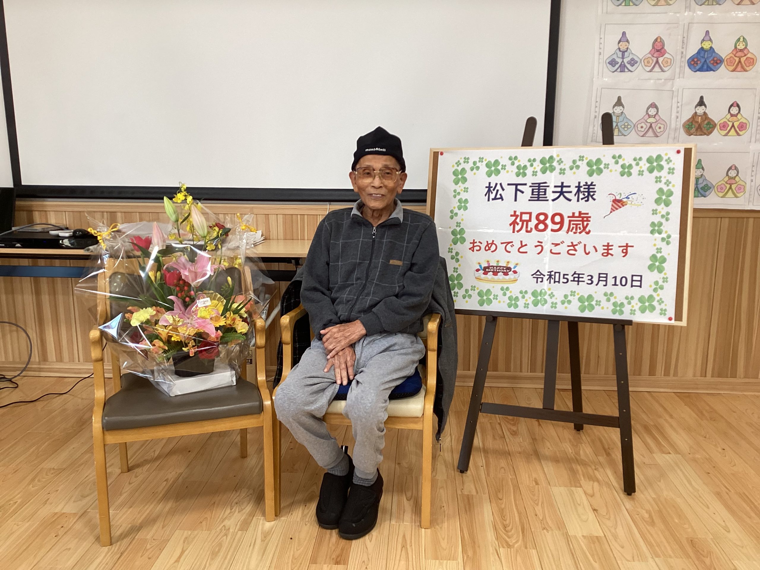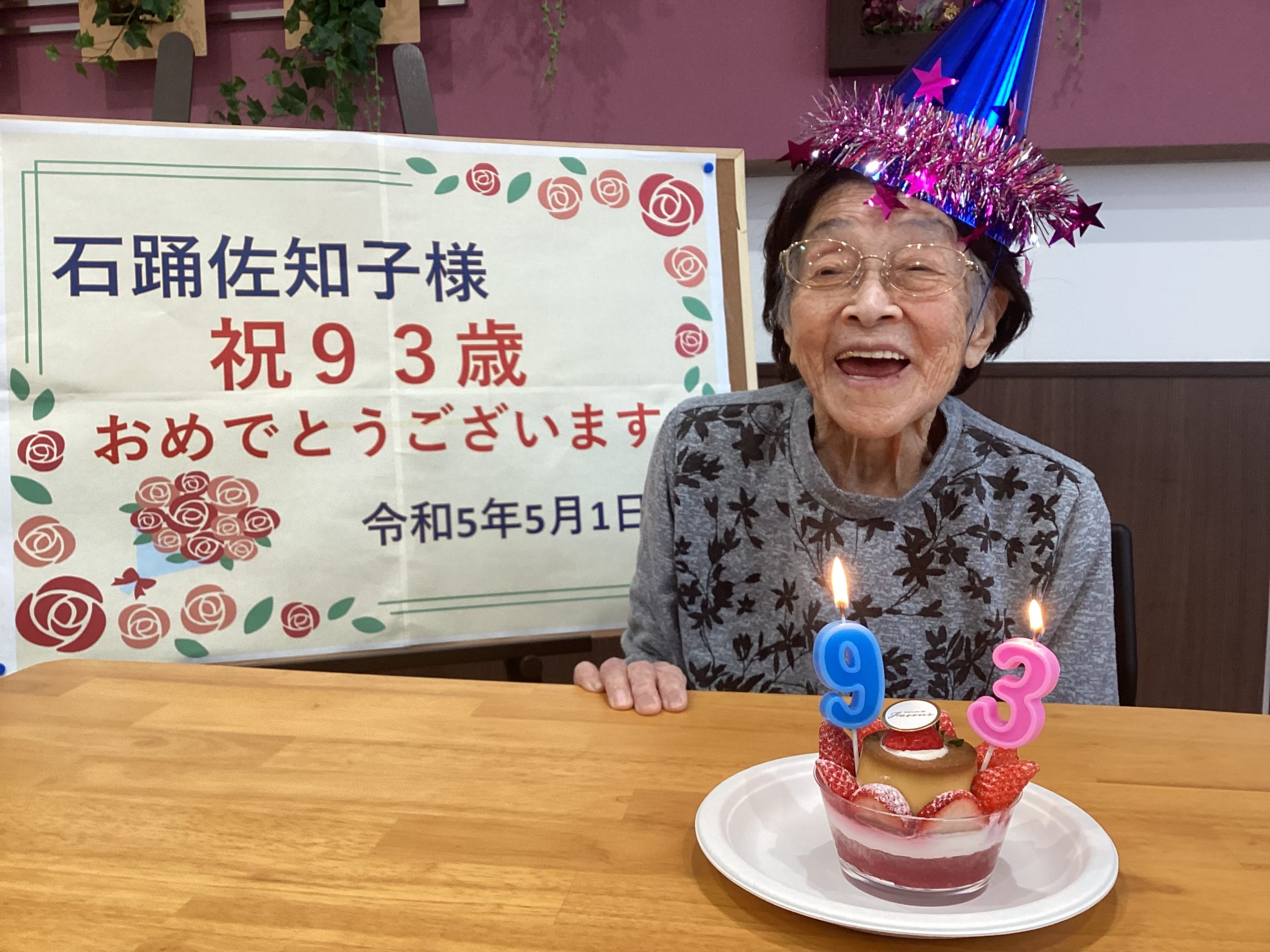 利用者様の誕生日のお祝いをしています。いくつになっても誕生日は皆さま笑顔を見せてくださいます。