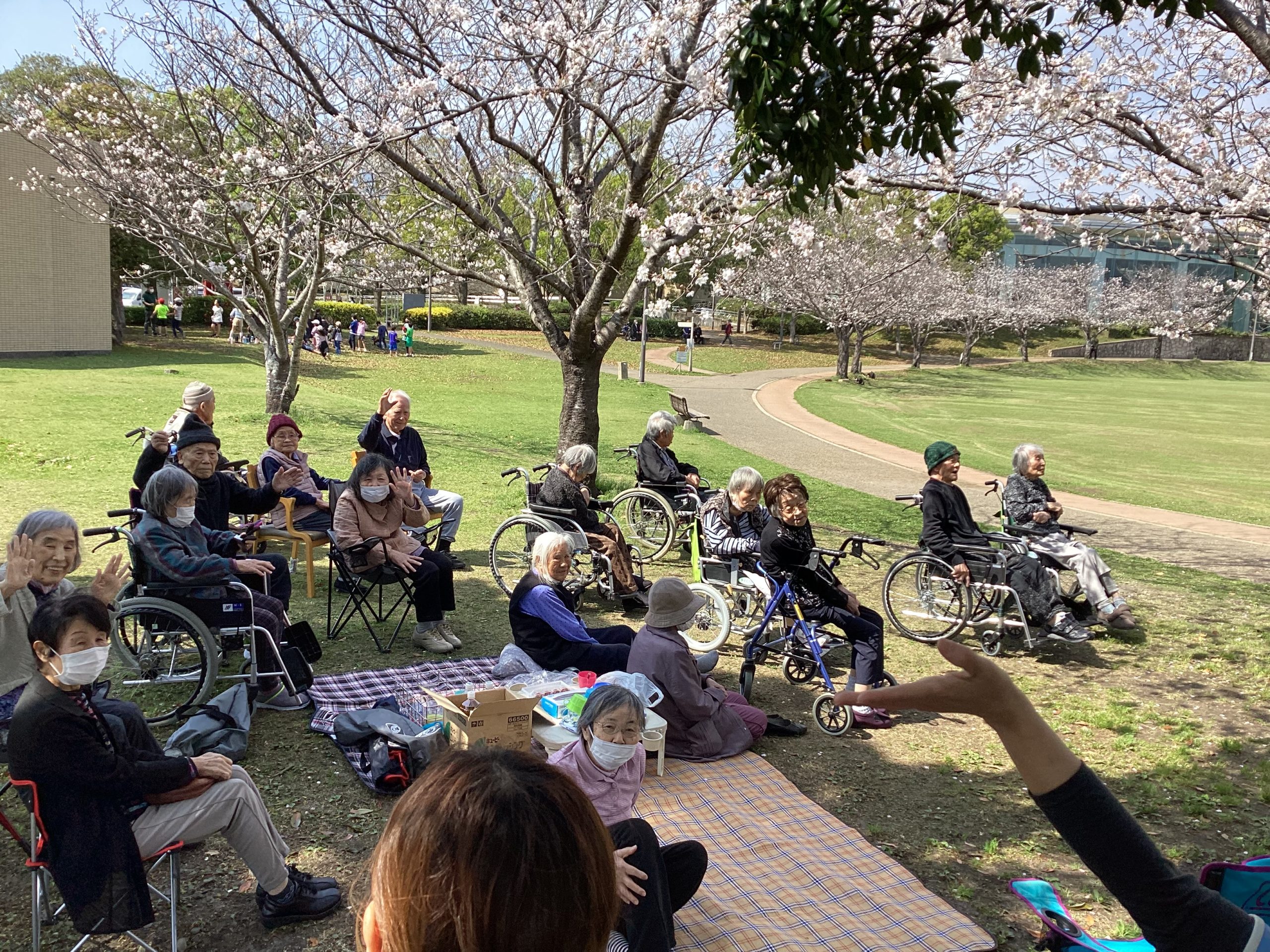 県プラへ花見に行きました。皆様きれいな桜の下でゆっくりとお茶会を楽しみました。