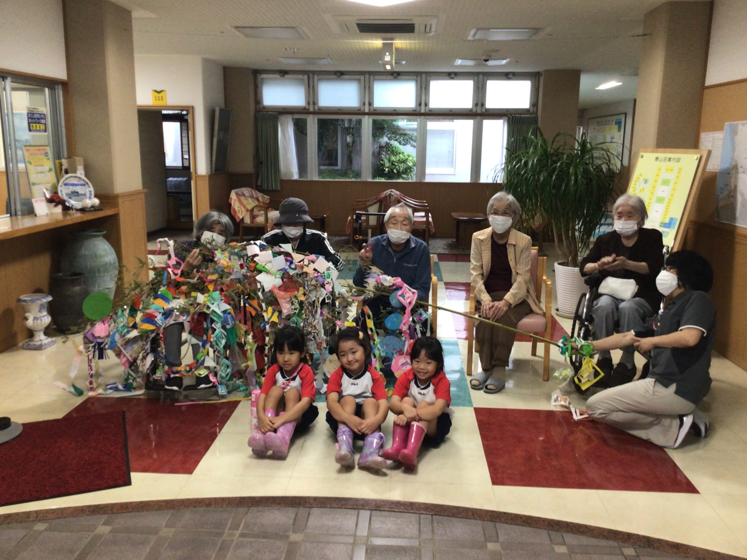 大根占幼稚園の子どもたちから青山荘に七夕飾りをいただきました。
