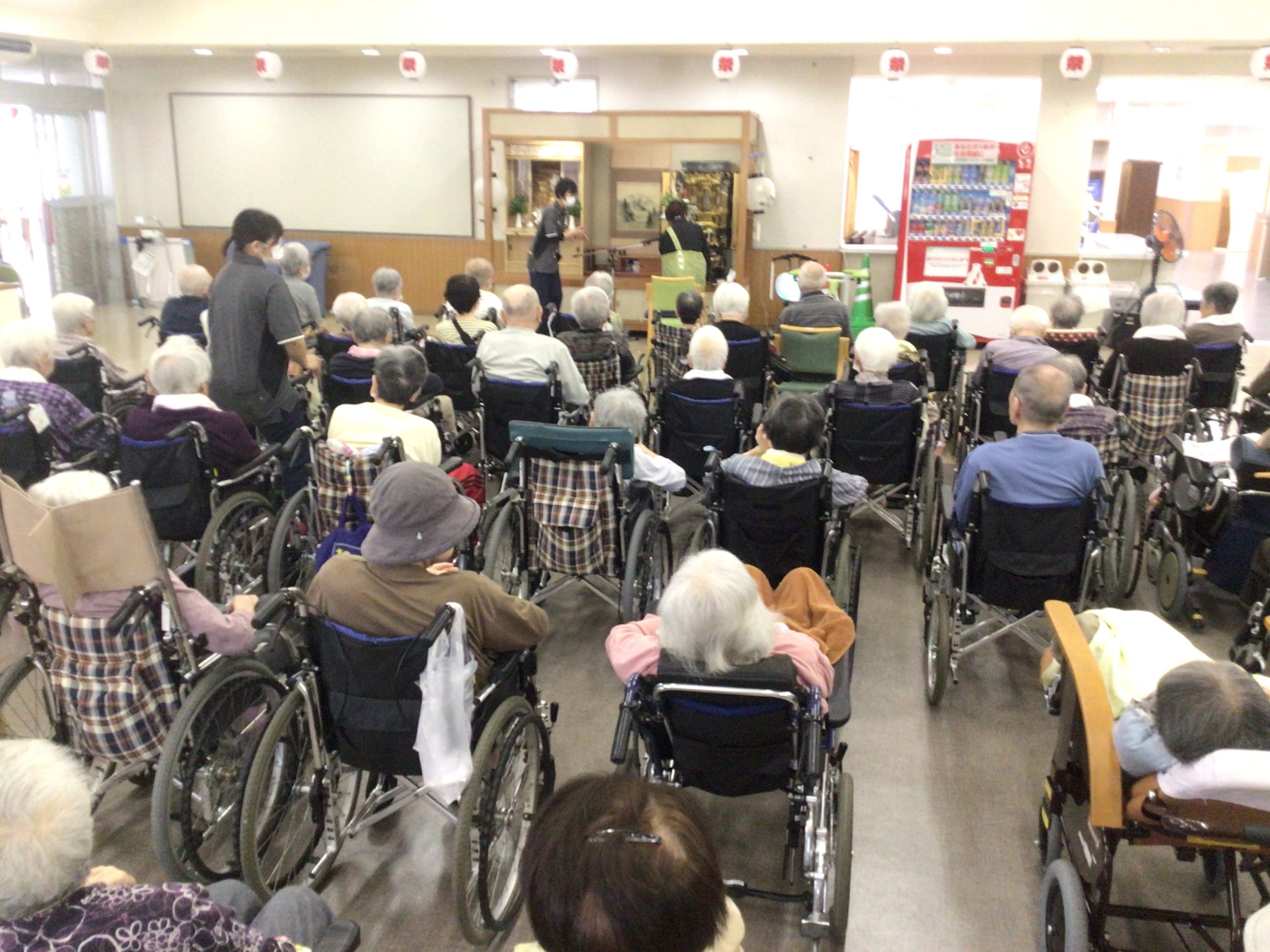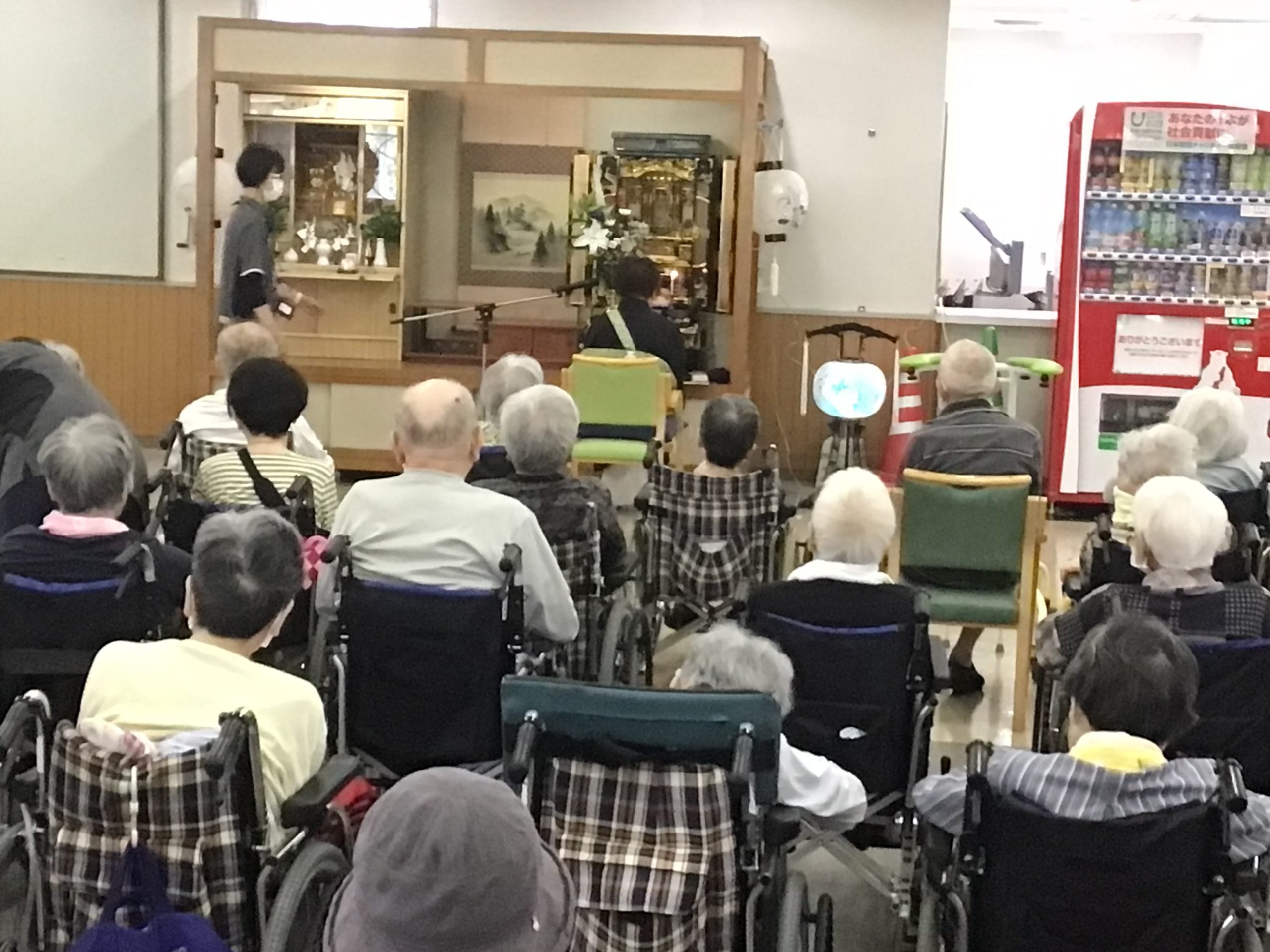 お盆の際は恒例となっている行事です。 ご利用者の方々にはお焼香をあげていただきました。 ご利用者の方々はもちろん、幸伸会の職員も先祖を敬う気持ちを忘れないようにしていきたいです。