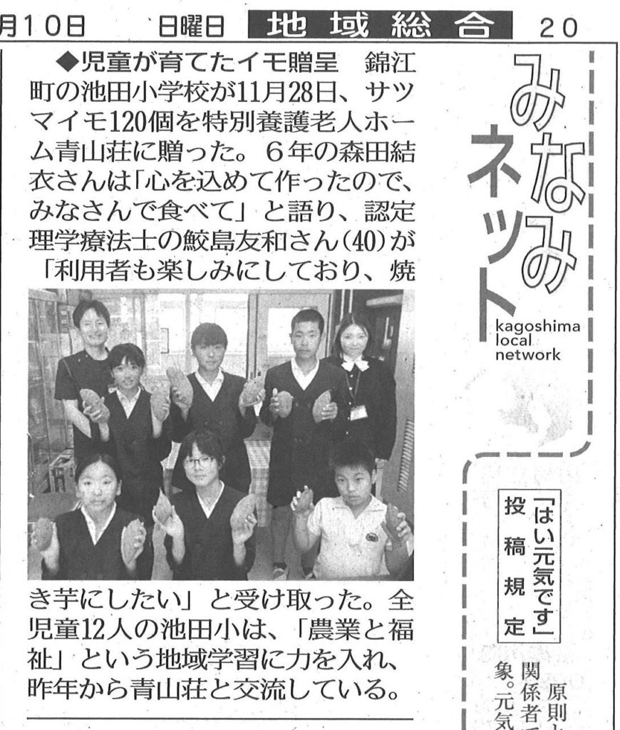 錦江町立池田小学校よりさつまいもをいただきました!(南日本新聞掲載)