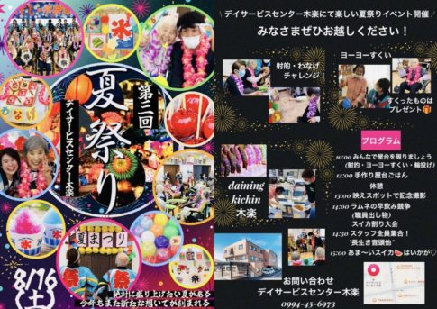 デイサービスセンター木楽の夏祭り 暑くなってきましたね!今回は告知です! ぜひ皆さんお越しくださいませ。