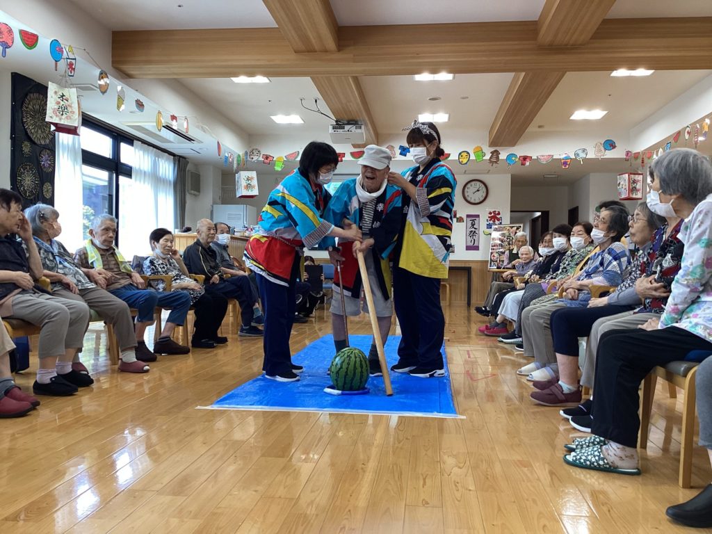 スイカ割りに縁日、手作りの屋台ご飯にと利用者様、職員とても楽しまれていました。