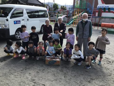 NEWS大根占幼稚園に唐芋をお裾分け 先日収穫した、錦江園中庭産の唐芋を大根占幼稚園にお裾分けしました。入所者さんから園児のみなさんに手渡しすると、たいへん喜んでくださいました。来年は、植え付けも一緒に出来るといいなぁ、と・・・...