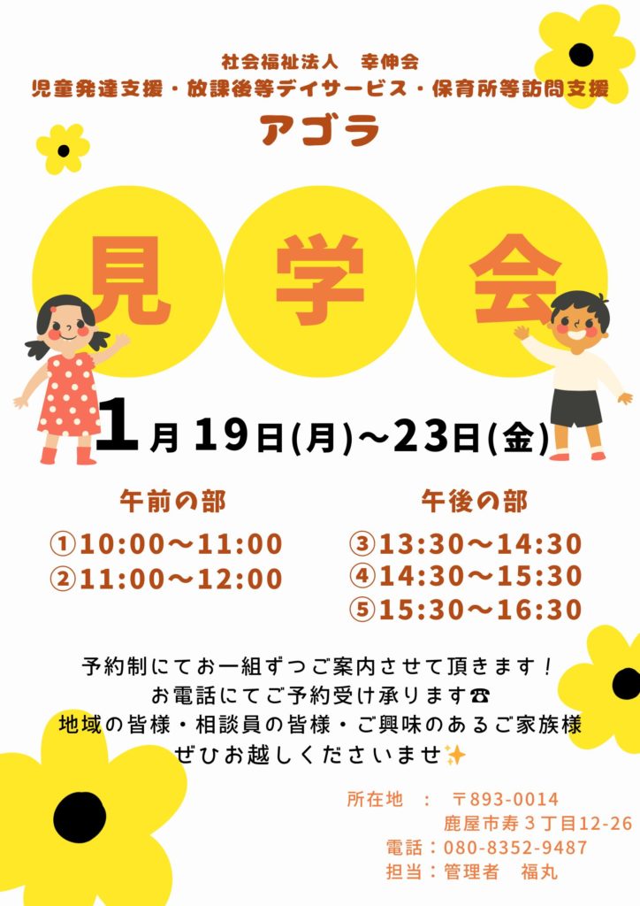 児童発達支援事業所アゴラでは見学会を実施します。