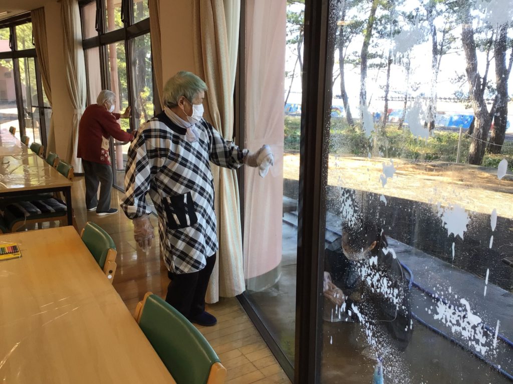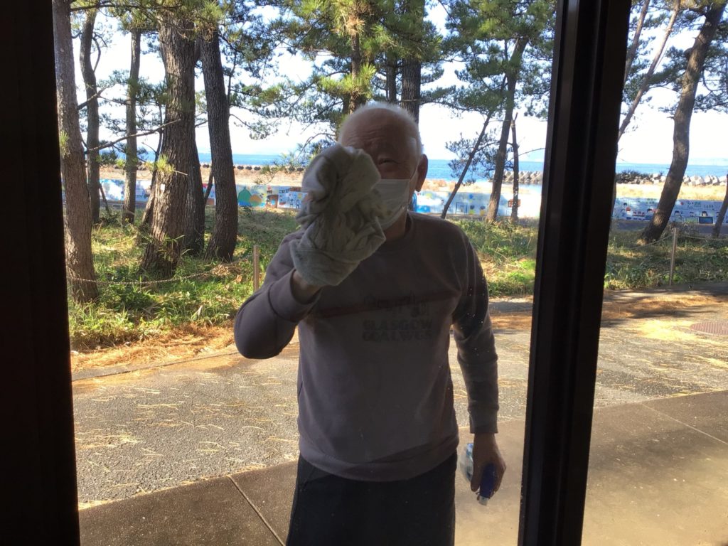 12/29は大掃除のお手伝いをしていただきました。食堂の窓もピカピカになり、錦江湾から開聞岳もより一層美しく見えます。
