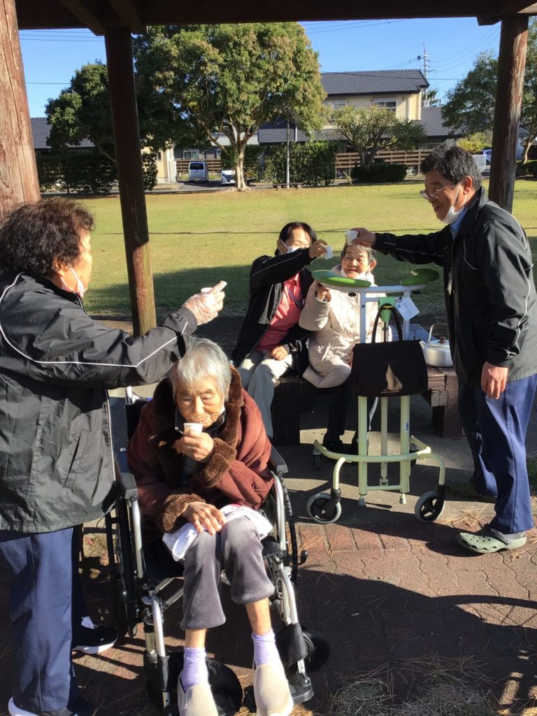 公園では甘酒を提供し、皆さんおいしいと太陽の光を浴びながらうれしそうに飲まれていました。合わせてゴミ拾い等のボランティア活動も行いました。