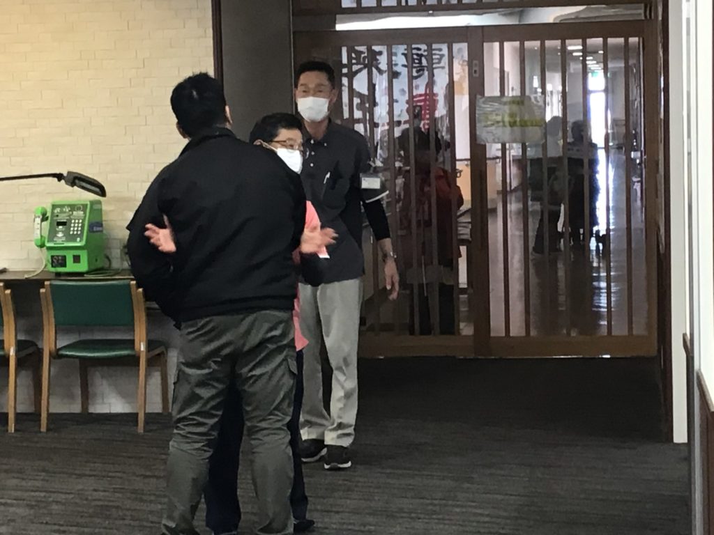 『祖父に会わせろ』と職員の静止を聞かず、施設内の居住スペースに入ろうとしました。