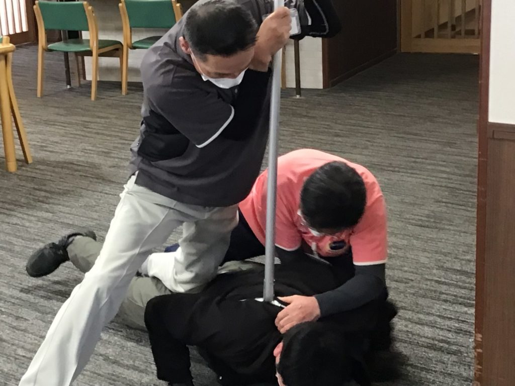訓練終了後、警察のかたから刺股の正しい使い方などご指導いただきました。