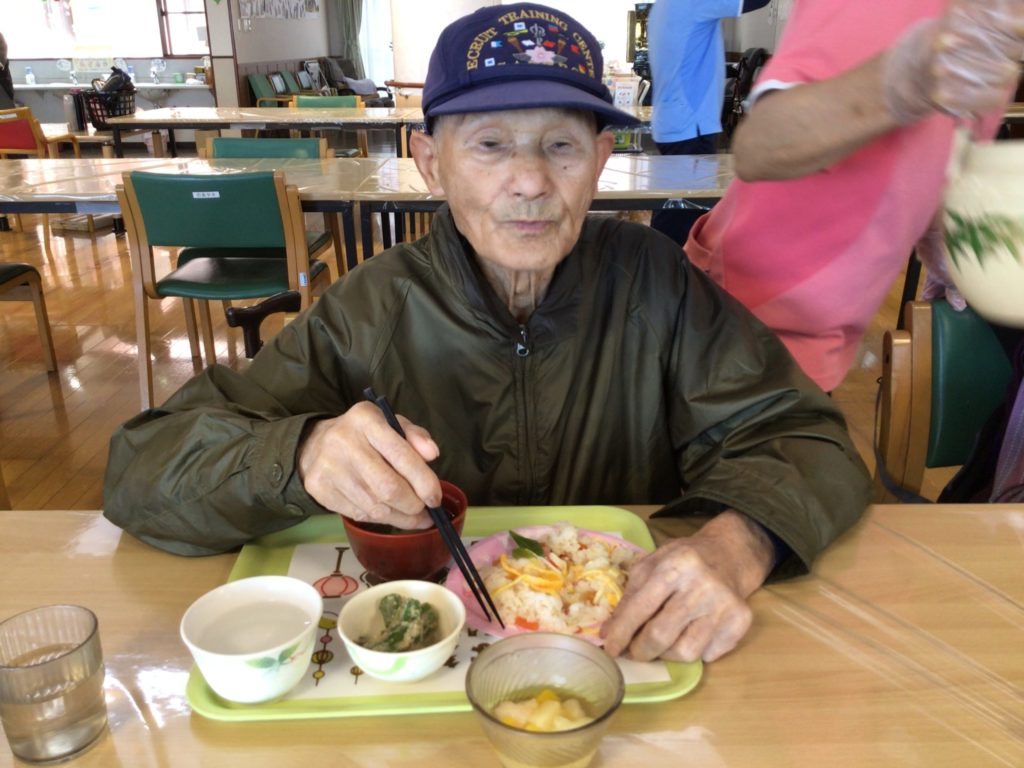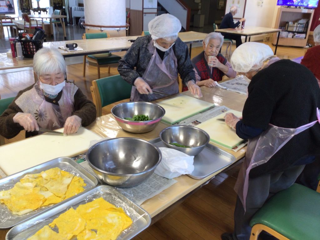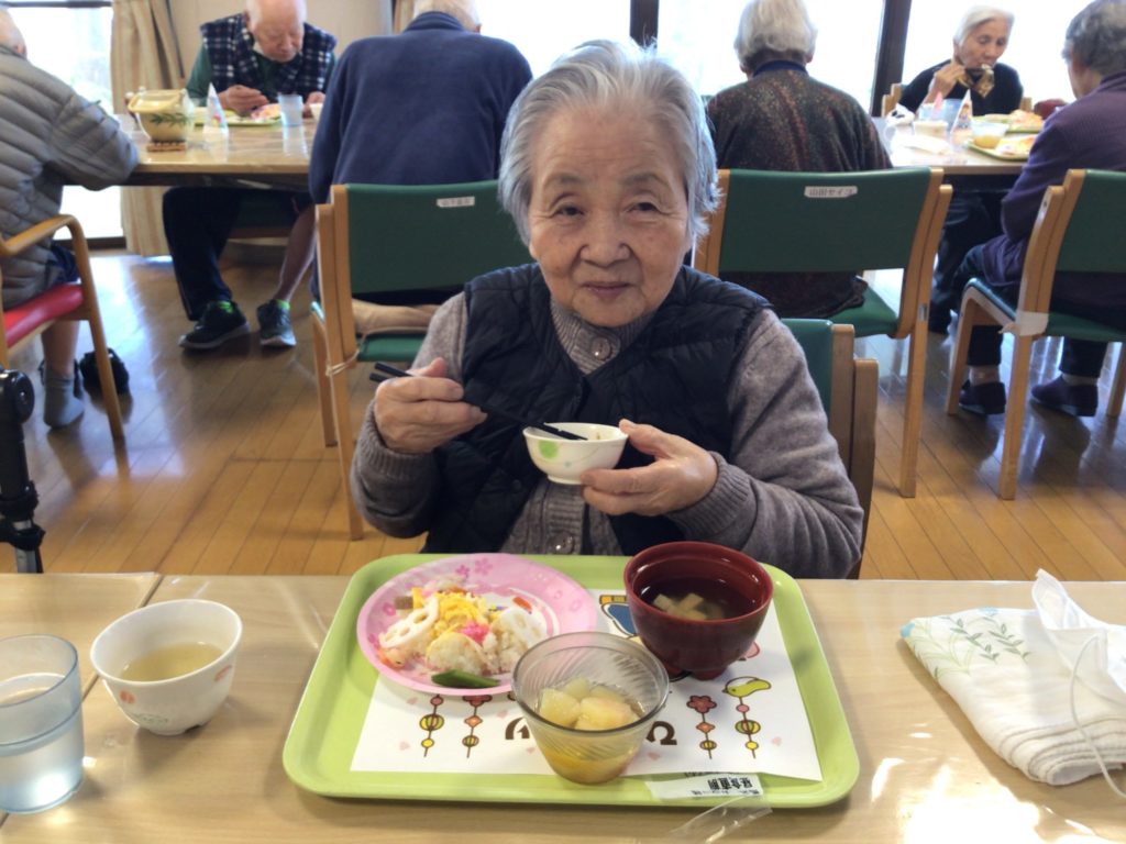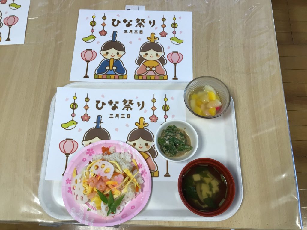 3月3日は桃の節句、ということで入所者さんにお手伝いをいただき、ちらし寿司とすまし汁を昼食に提供しました。