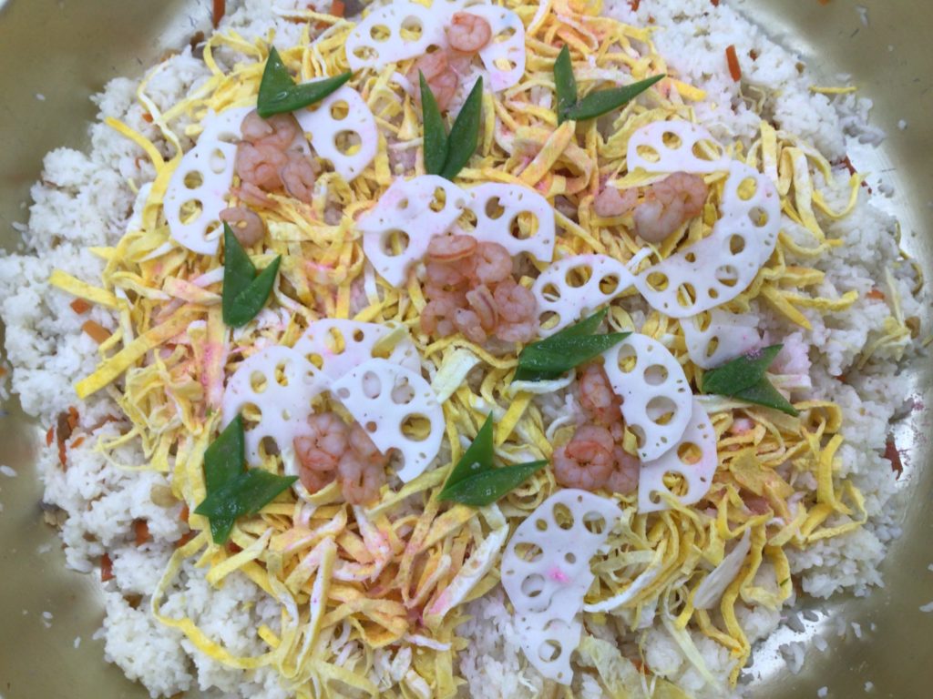 皆さまの幸せを願いながら、彩り豊かなちらし寿司に舌鼓を打ちました。